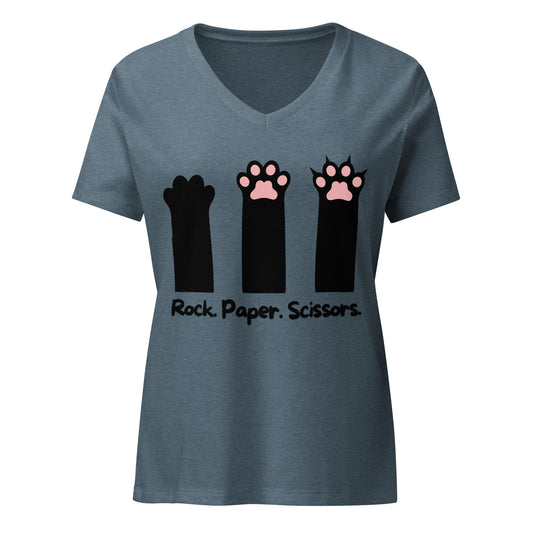 Cat: Rock, Paper, Scissors | V-Neck T-Shirt