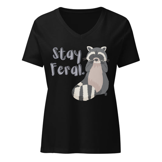 Stay Feral T-Shirt| V-Neck Raccoon T-Shirt