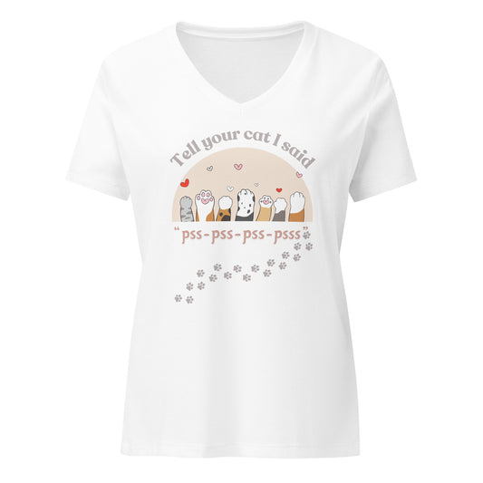 Tell Your Cat I Said Pss-Pss-Pss | Cute Cat V-Neck T-Shirt